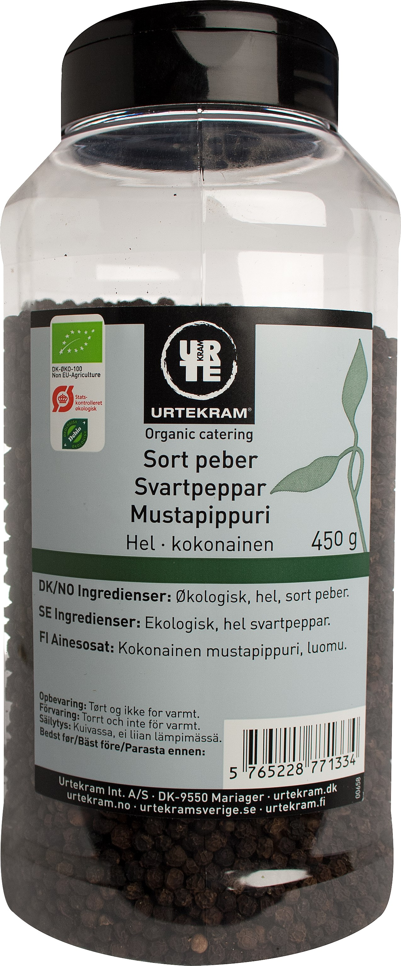 Økologisk, hel, sort peber.
