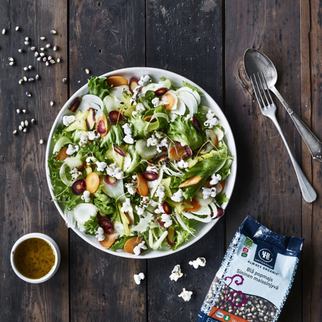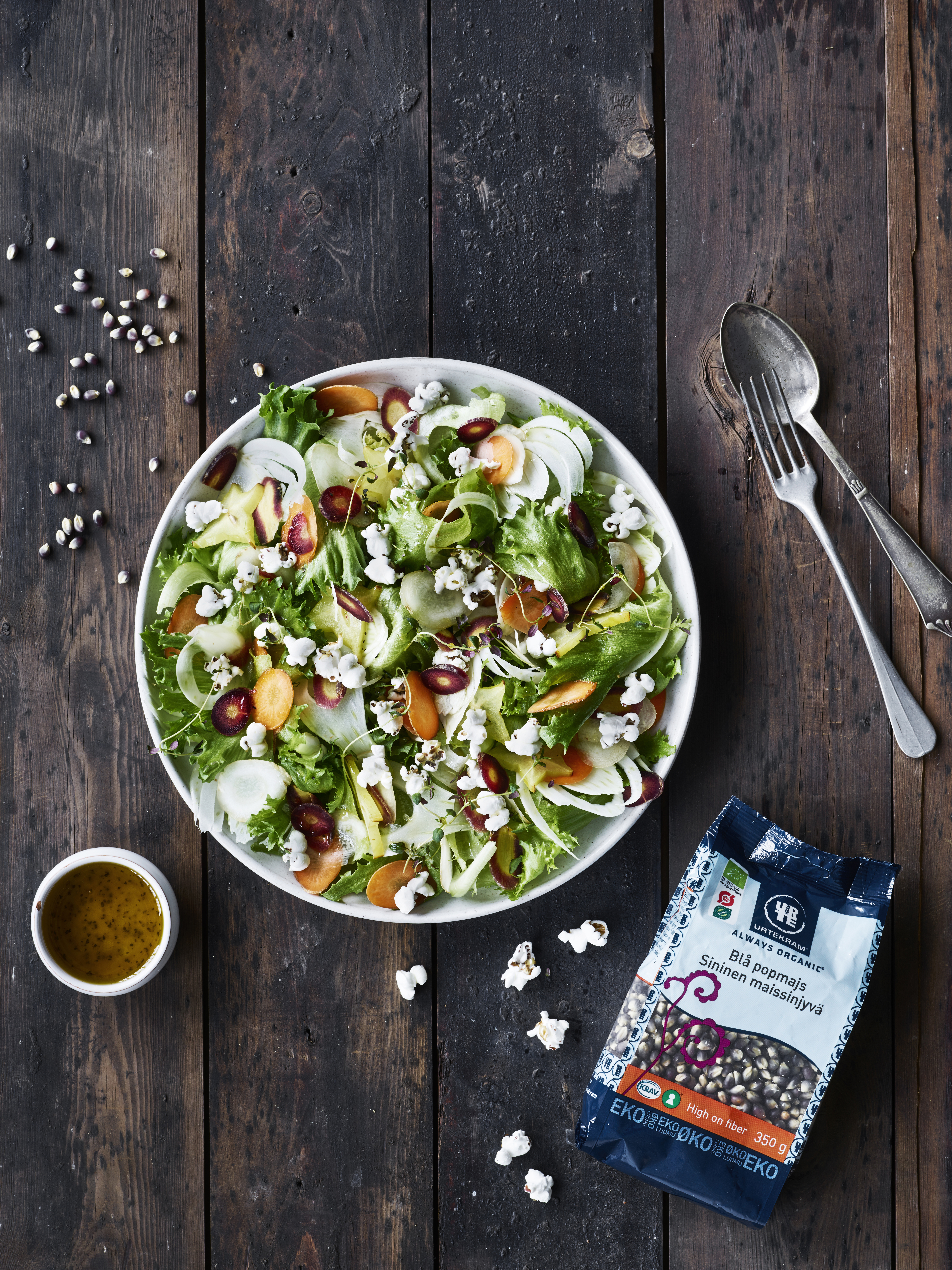 De afkølede popcorn drysses over salaten og er derefter klar til servering.
